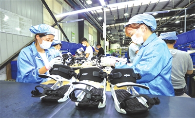 8月23日,在开泰体育用品(威海)制造车间,工人正在生产滑雪板上的雪鞋固定器。开泰体育用品制造(威海)有限公司目前是全球最大的滑雪板和雪橇制造基地,今年上半年企业销售收入1.53亿元,同比增长36.5%。