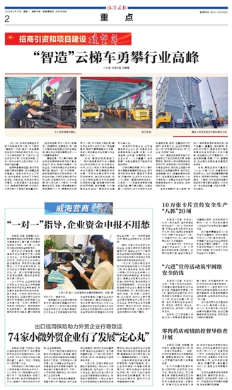 9月15日,走进威海高丽亚专用汽车制造有限公司(以下简称“高丽亚”)大院,调试人员吕健男正在进行云梯车的测试工作,这台36米云梯车刚刚“走”下生产线,已经被客户订购。不过在发货前,工作人员还会进行上百次测试,以此保证产品质量。