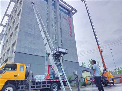 吕健男拿着遥控器,通过按钮控制云梯车的高度,将云梯靠在测试墙壁上,遥控运货平台上下移动。在作业期间,他测试了云梯车的油缸、多路阀组、机械结构等运行情况。“这款车增加了全车遥控系统,使用起来更方便。我们的多次测试是为了确保产品质量过关,一旦发现问题,技术人员会及时解决。”吕健男说。在高丽亚,每一辆从这里走出的车都会经历全套监测,高空作业车甚至需要经历1000次梯臂伸缩测试。