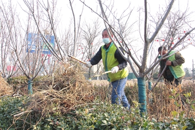 人勤春来早。连日来,在临港区的大街小巷,处处可见园林工人们忙碌的身影。上树修剪树枝、树下清扫枯枝落叶、缠绕防虫带……园林工人们分工明确,动作麻利,一辆辆清运车带走了冬天的萧瑟。
