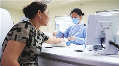本报讯(记者 王威晨)8月12日,在威海市立医院临港院区门诊医技楼二楼采血窗口,居民们正有序排队,进行慢性病毒性肝炎筛查。